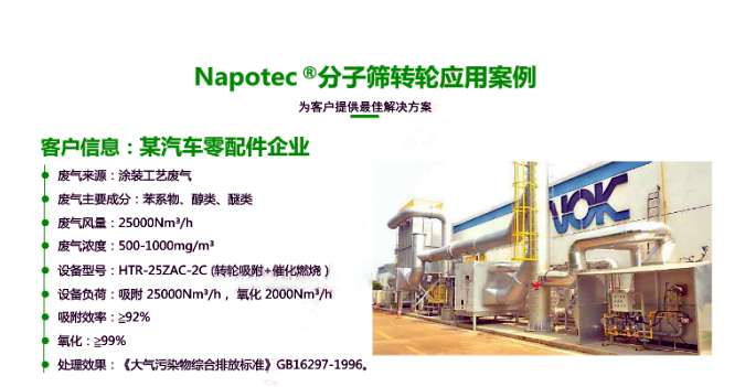 分子筛转轮吸附浓缩+热氧化技术(RCO/RTO)适用于低浓度、大风量的挥发性有机废气净化处理。