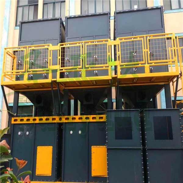 车间排放的喷漆废气由风机抽动经风管引出后经过预处理(喷淋塔和干式过滤器)后,催化燃烧设备初步净化后的气体进入活性炭吸附器,气体有机物被活性炭吸附,气体得到净化,净化后的气体由烟囱排出本工艺中,吸附器3-7个,其中1个吸附器进行脱附,其余吸附器进行吸附。根据需要开启,可实现吸附过程的持续工作。饱和后的吸附器,通过气动阀门切换到脱附状态,启动催化床内的电加热和脱附风机,脱附出来的高浓度有机废气送入催化燃烧设备,在电加热和催化剂的作用下,气体中的有机物质分解成CO2和H2O气体得到净化。净化后的气体经蓄热体回收部分热量后排出,一部分回至RCO内的换热器提升温度后与新鲜空气混合至需要的再生温度,用于脱附活性炭使用,另一部分直接排入烟囱排出。本系统采用PLC自动控制,监测、控制设备的运行。