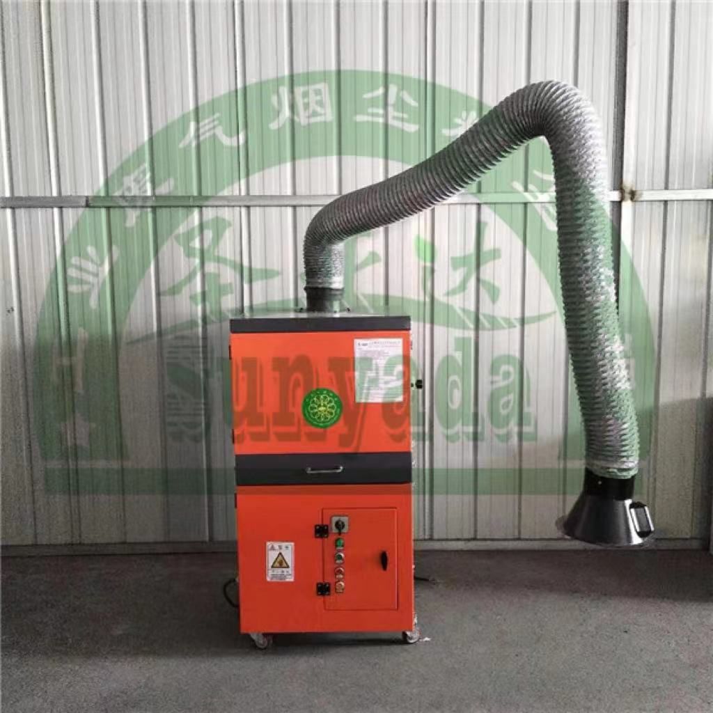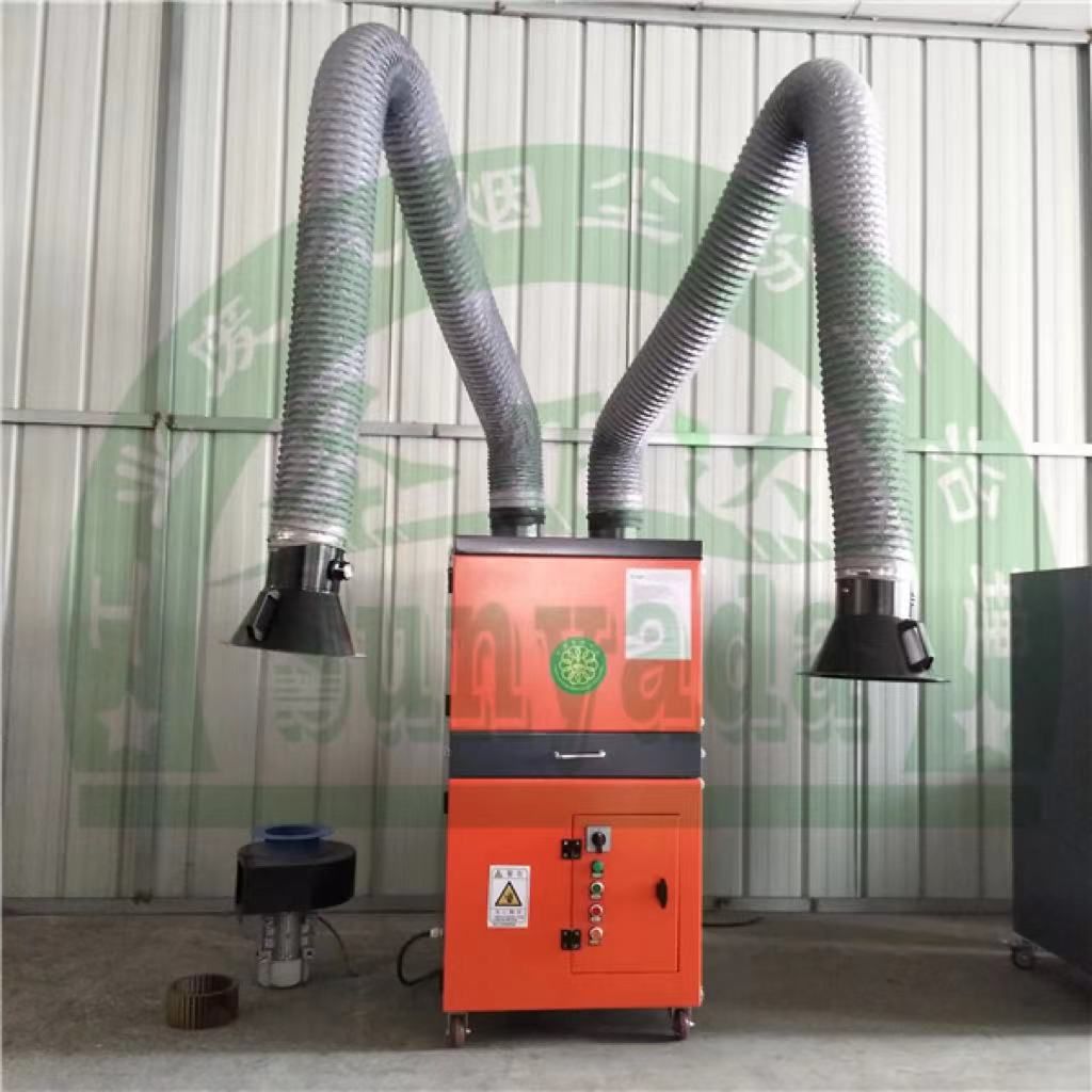 单机移动式除尘器是当含尘气体由进风口进入除尘器,首先碰到进出风口中间的斜板及挡板,气流便转向流入灰斗,同时气流速度放慢,由于惯性作用,使气体中粗颗粒粉尘直接流入灰斗。