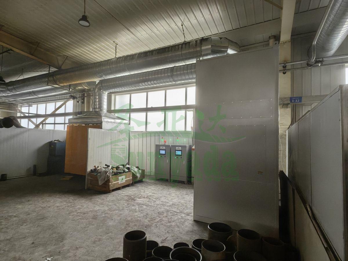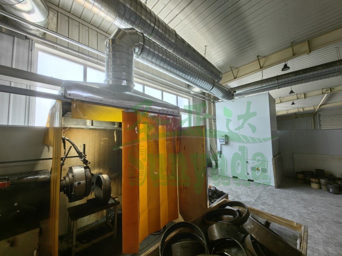 根据该客户现场实际工况,我司为客户定制了一台10000风量的除尘一体机,并搭配了吸尘罩+软帘+管道的设计,该项目现已顺利完工。