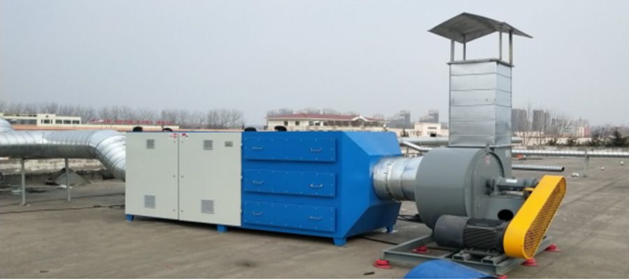 废气在设备内通过具有一定能量的光照射,光敏半导体材料即被光激发出电子等,吸附在光敏半导体表面的溶解氧、水及污染物分子接受光生电子,从而发生一系列的氧化还原反应,使污染物降解为二氧化碳和水等物质。在外加紫外线的作用下,介质放电产生大量携能电子轰击污染物分子,使其电离、解离和激发,然后便引发一系列复杂的物理、化学反应,使复杂的大分子污染物转变为简单小分子安quan物质,从而使污染物得以降解去除。然后很小一部分未被裂解的污染物进入活性炭吸附床, 有机污染物被吸附于活性炭的微孔之中,排放洁净的气体。